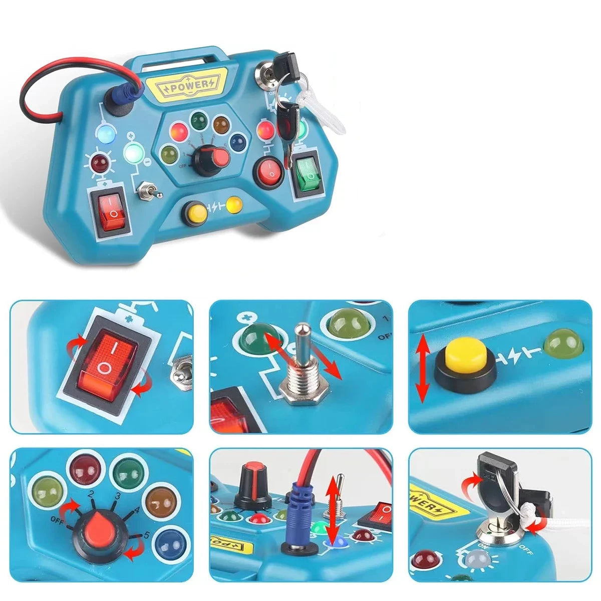Painel Sensorial Infantil Controle de Botões, Luzes e Chaves para Coordenação e Criatividade